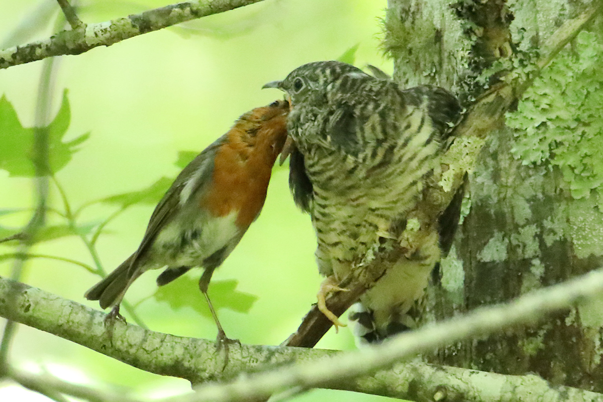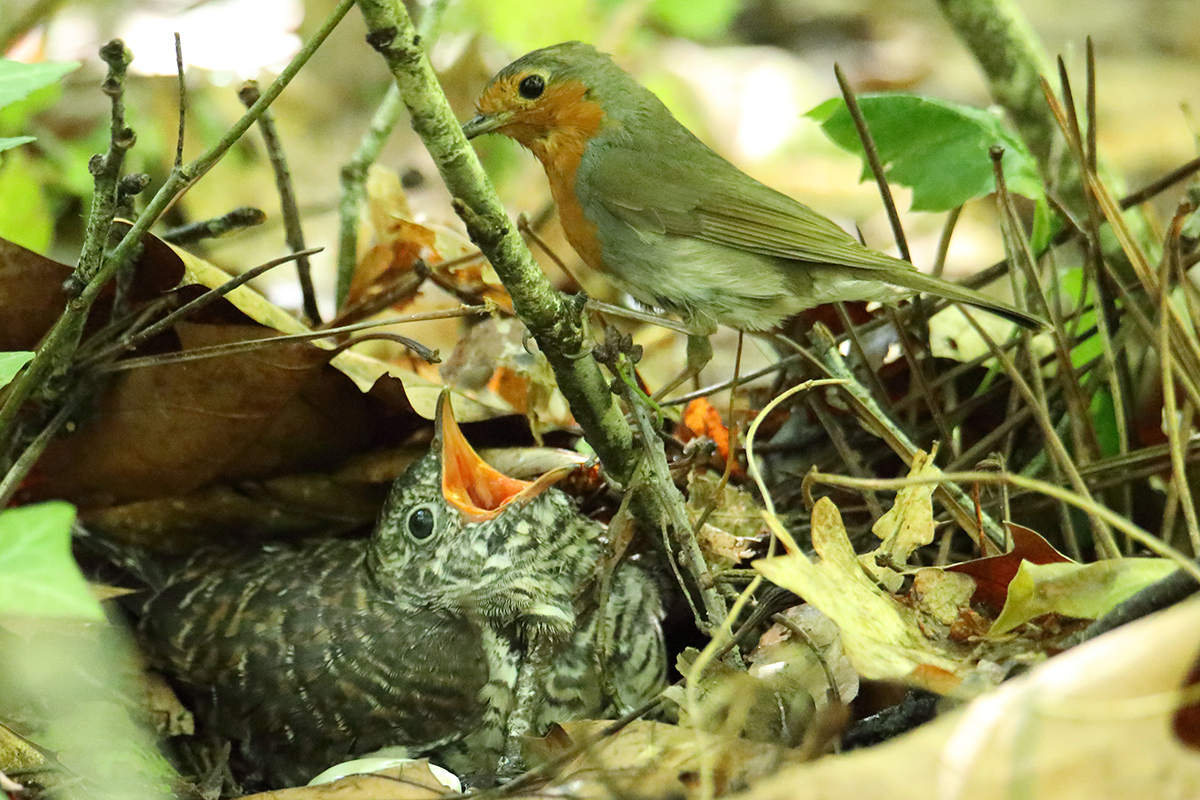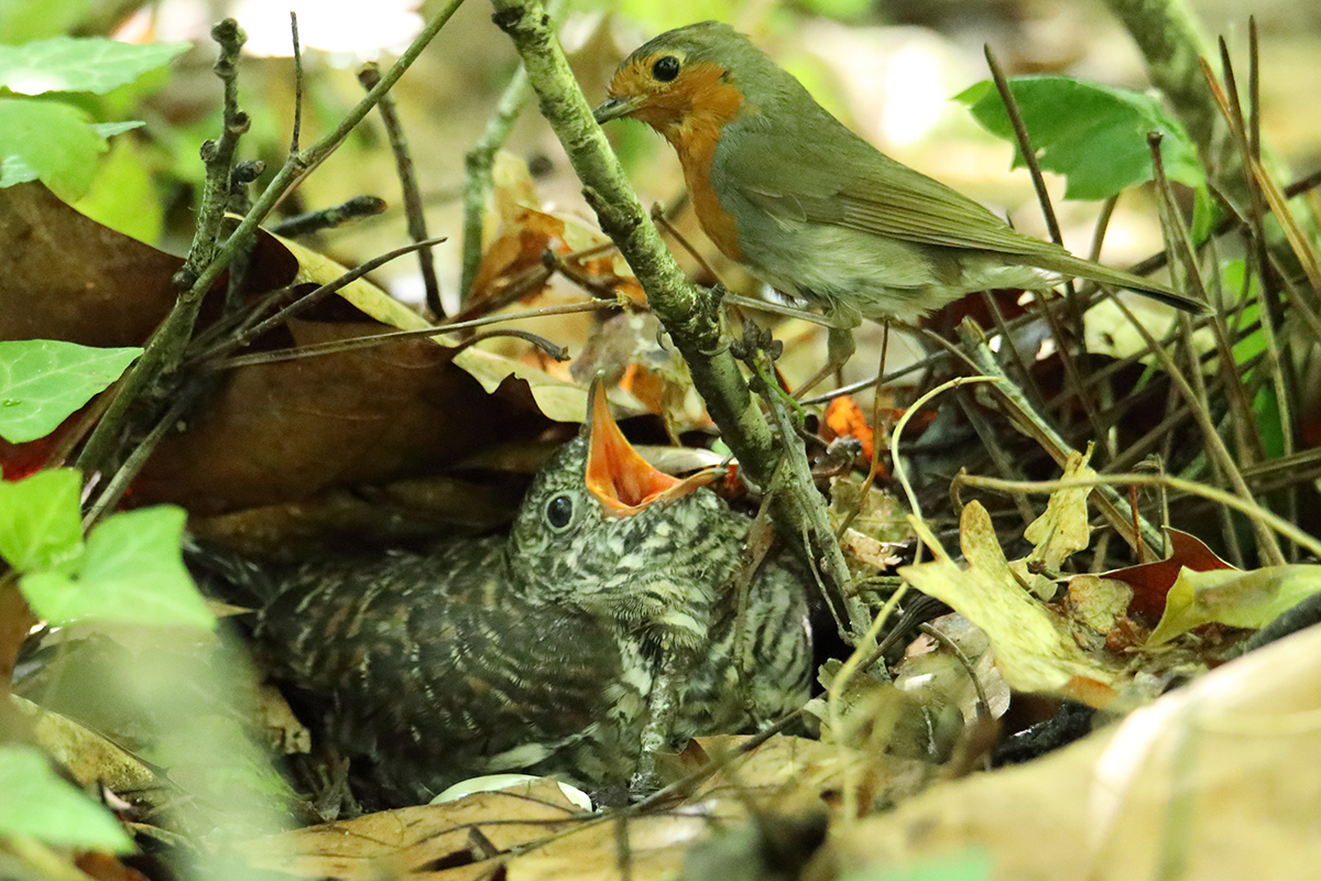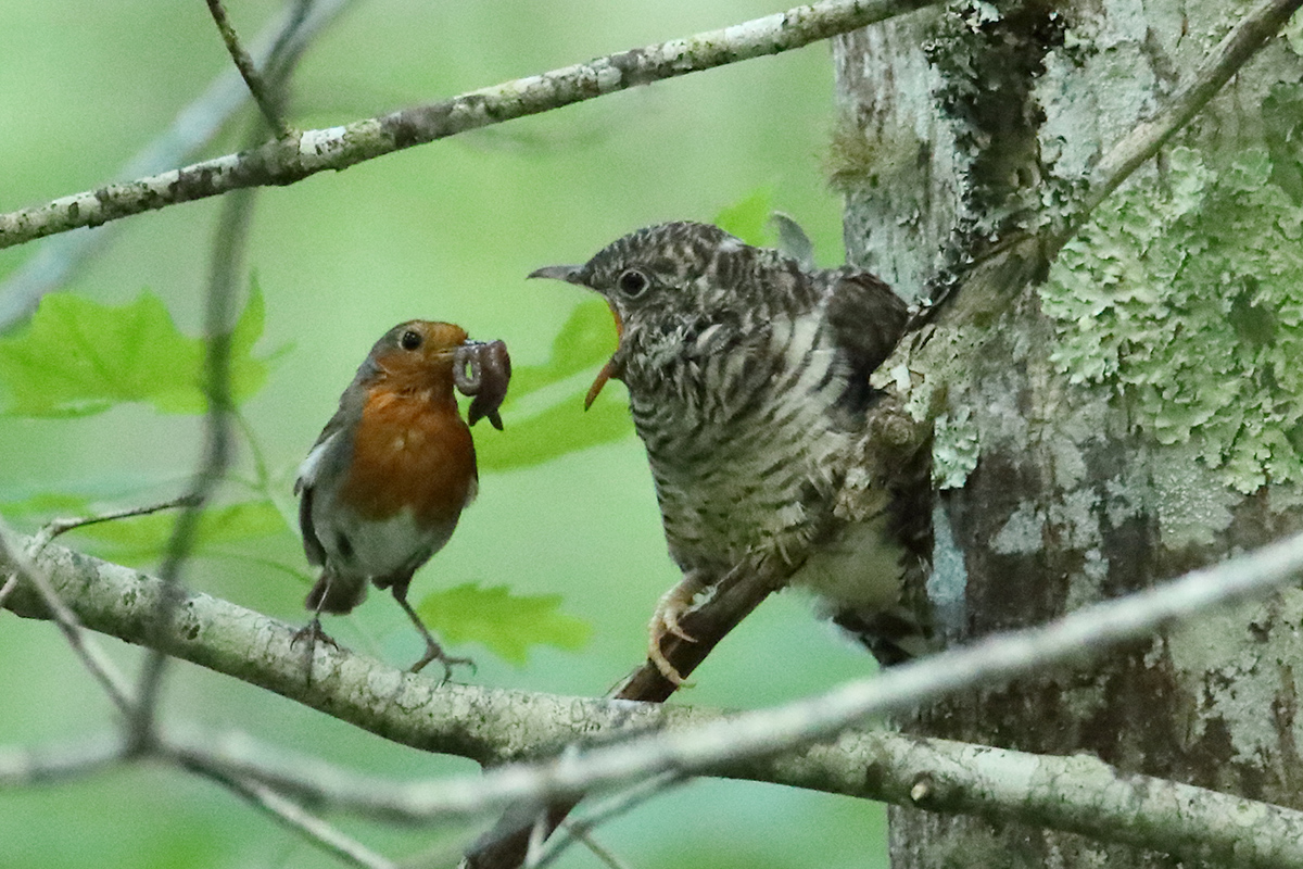 Année exceptionelle: le jeune coucou gris couvé et élevé par un couple de rouge gorge