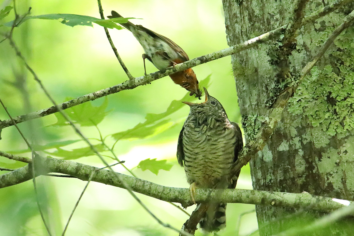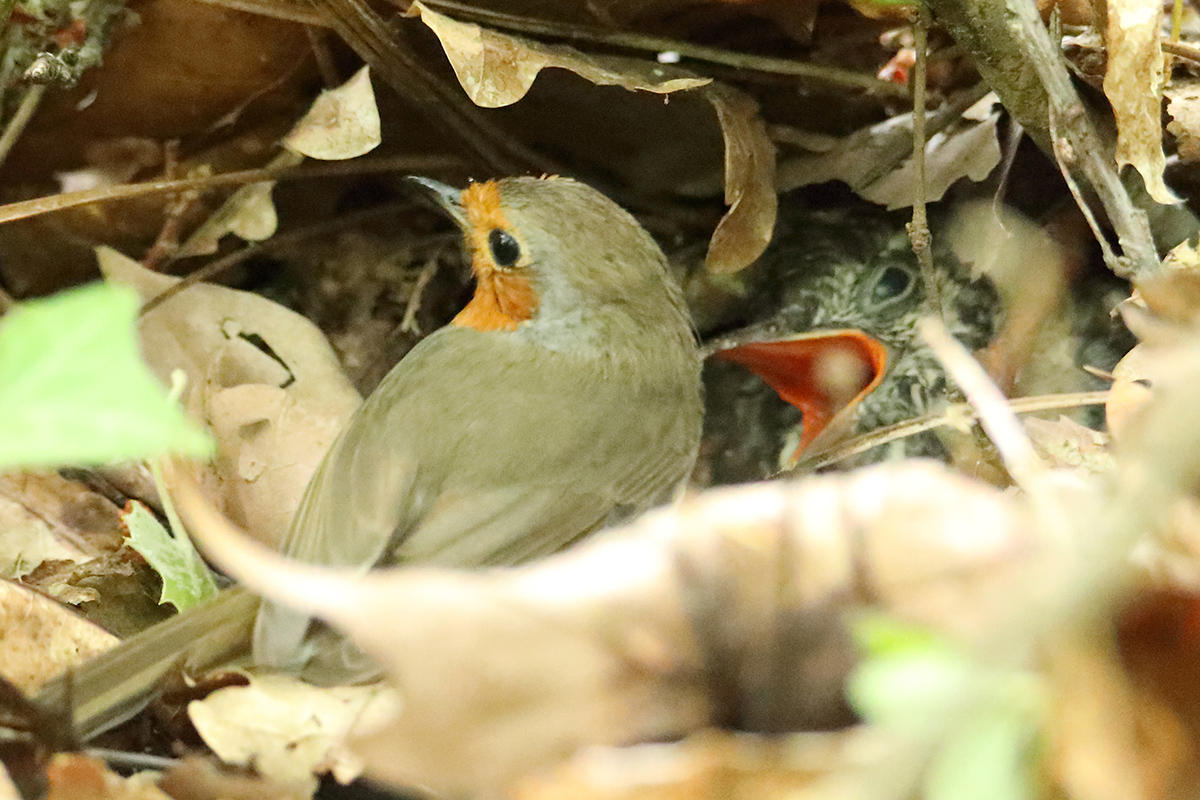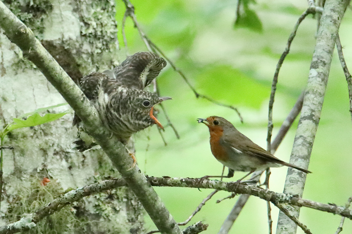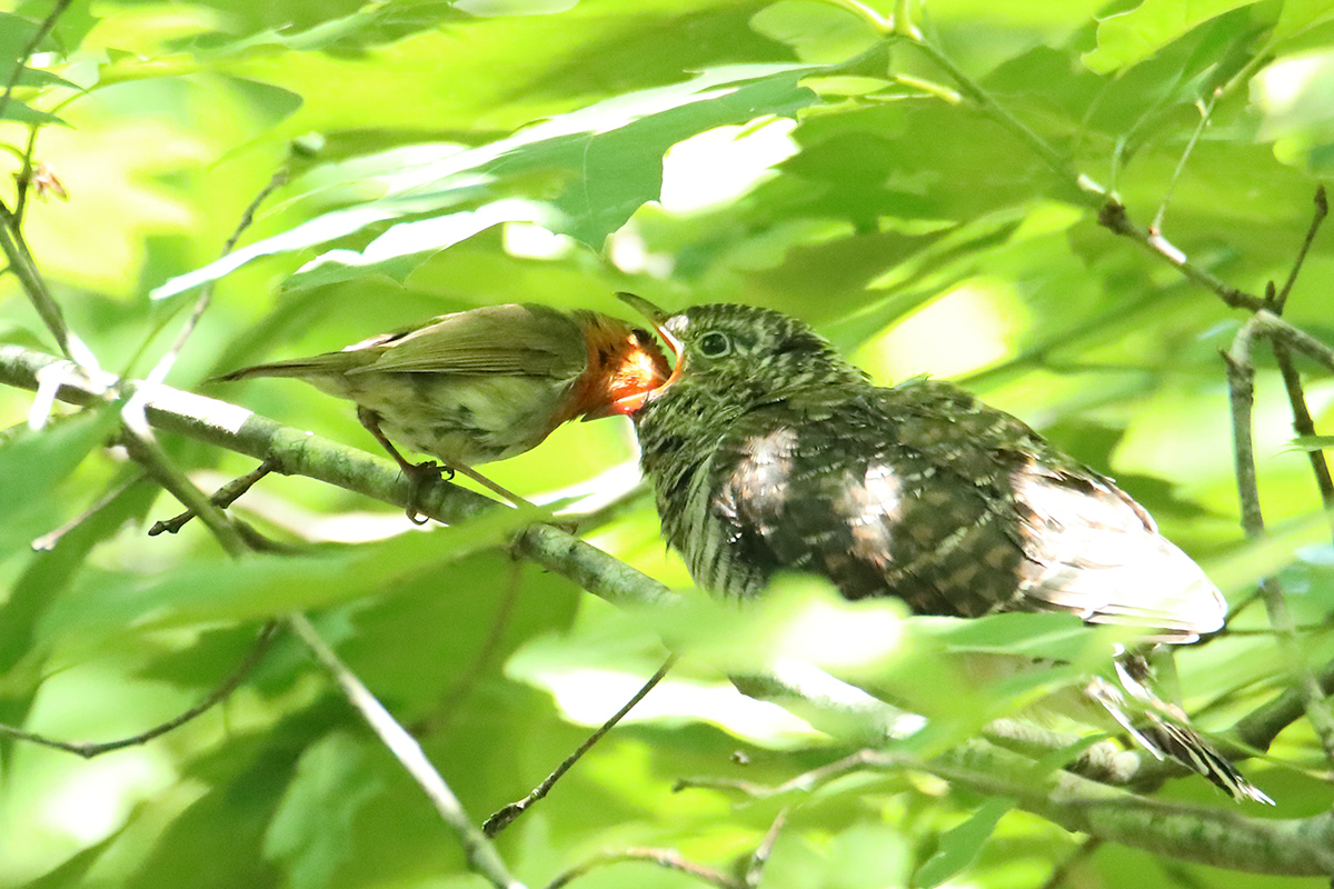 Année exceptionelle: le jeune coucou gris couvé et élevé par un couple de rouge gorge